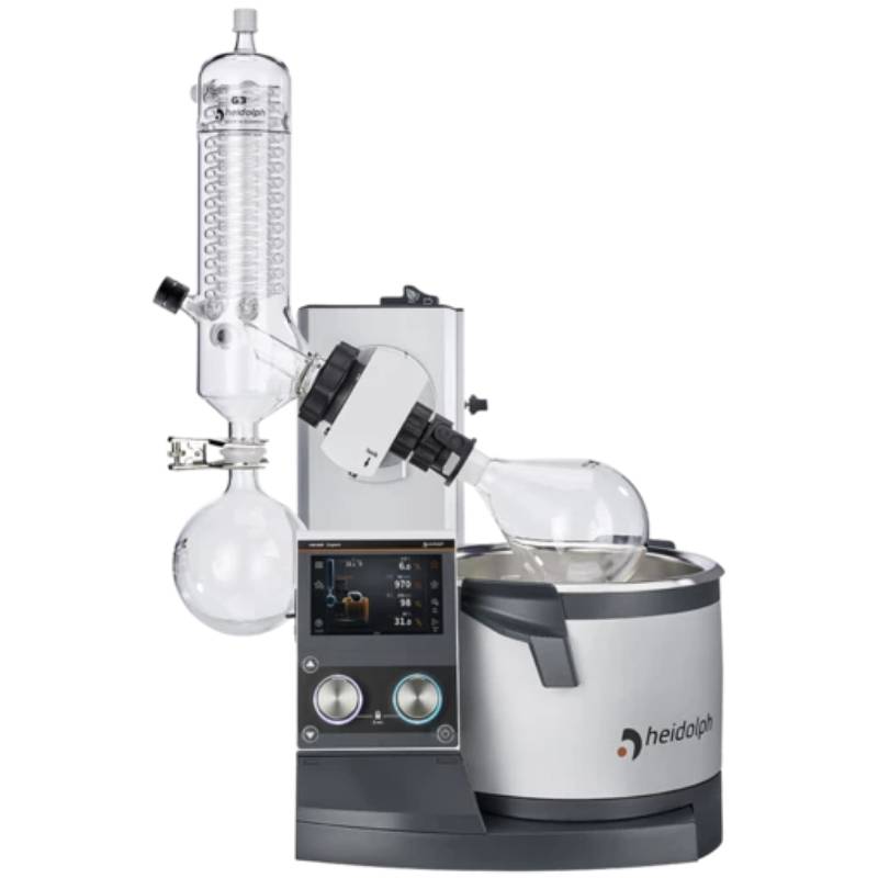 蒸發(fā)瓶和接收瓶受透明、防霧 PMMA 防護罩保護,有效提高安全性。水/油兩用加熱鍋可用水或浴液,最高加熱溫度可達 180 °C。集成自動補液系統(tǒng)、溢流口及底部放液閥。EASY LOCK可實現(xiàn)單人更換蒸發(fā)瓶。
